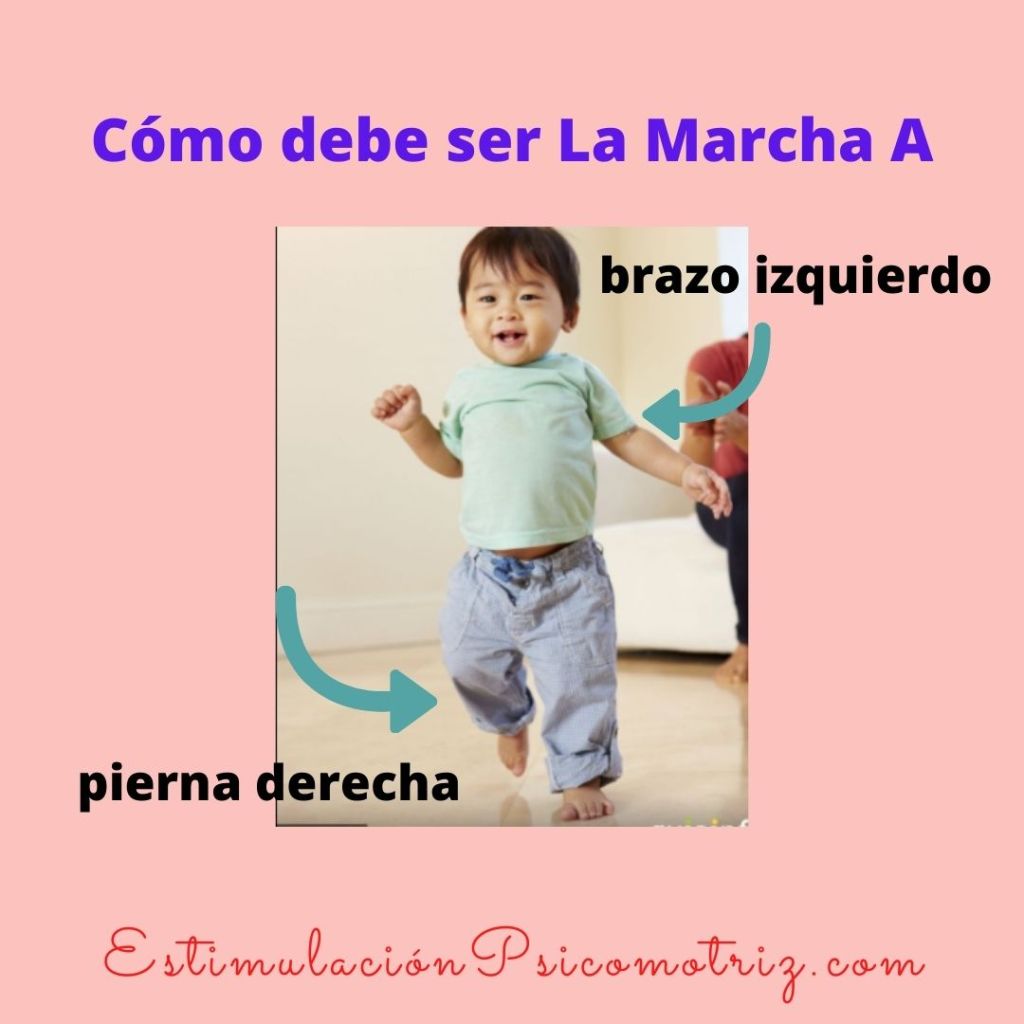 La marcha ha de llevarse a cabo mediante un claro patrón cruzado o contralateral (brazo y piernas contrarios a la vez)