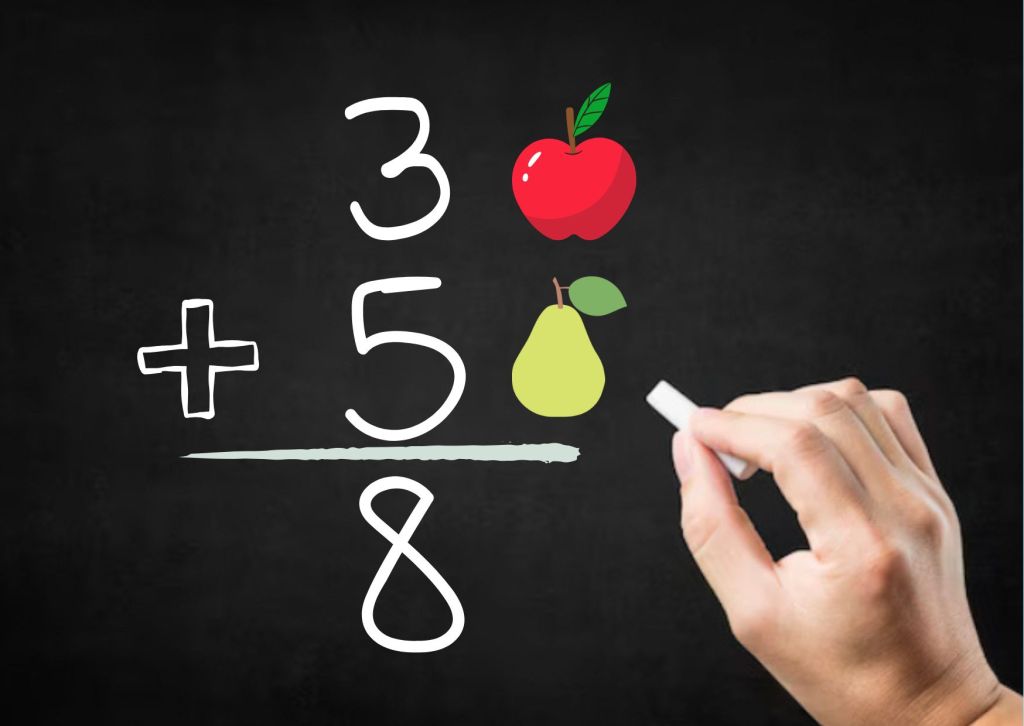 Imagina que tienes 3 manzanas y 5 peras, y que tienes que sumar estas frutas.