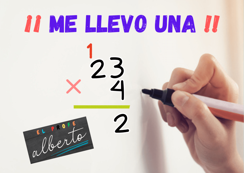 - Si al multiplicar las unidades te da 15, el 5 (la unidad) se queda en su casa, y el 1 (la decena) se tiene que ir a vivir a la casa de al lado, la de las decenas. ¡Ese 1 que viaja es la llevada!