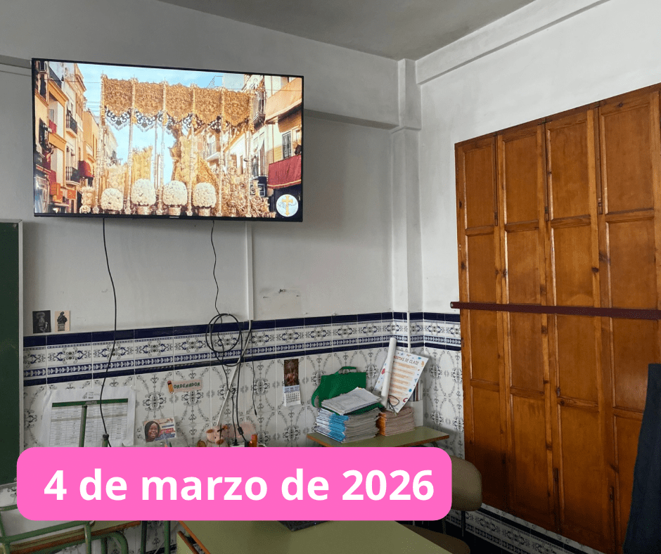 La televisión viene gracias al trabajo impagable del AMPA del cole, y la colocación en el aula viene por un grupo de profesores; ¡¡¡ole por ustedes!!!